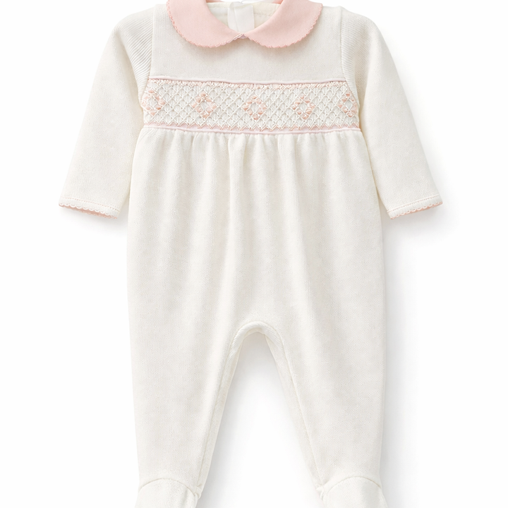 First Blossom Knit – Hand Smocked Newborn Footie Set