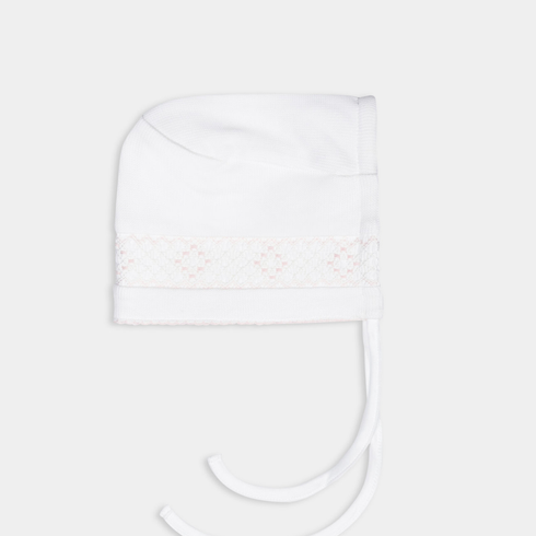 Welcome your little one in timeless elegance and ultimate softness with our Hand-Smocked Footie Set, beautifully crafted from special knit 100% Peruvian Pima cotton. This heirloom-quality set includes a delicately hand-smocked footie, a matching bonnet, and a coordinating blanket — all designed to wrap your newborn in luxury from the very first moment.